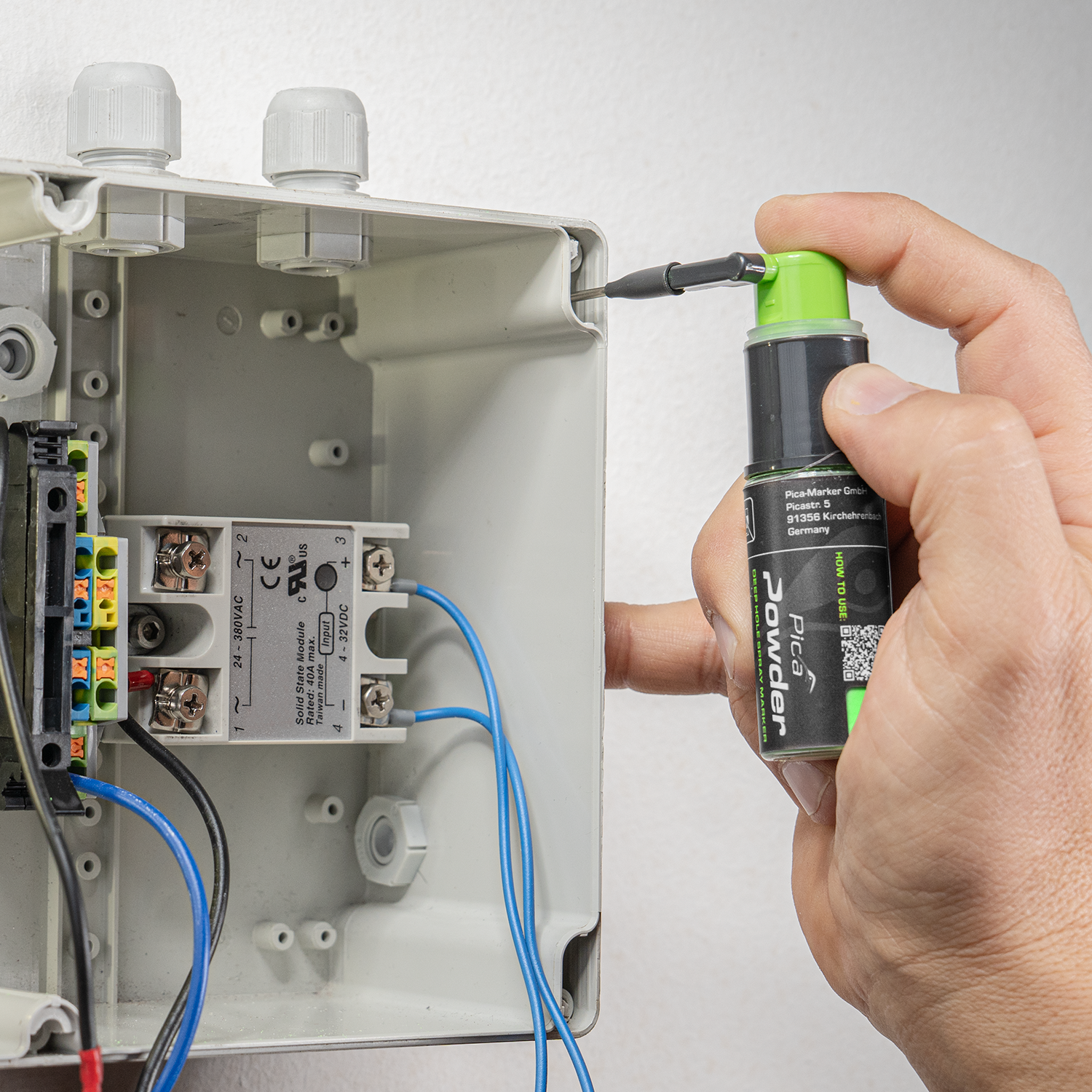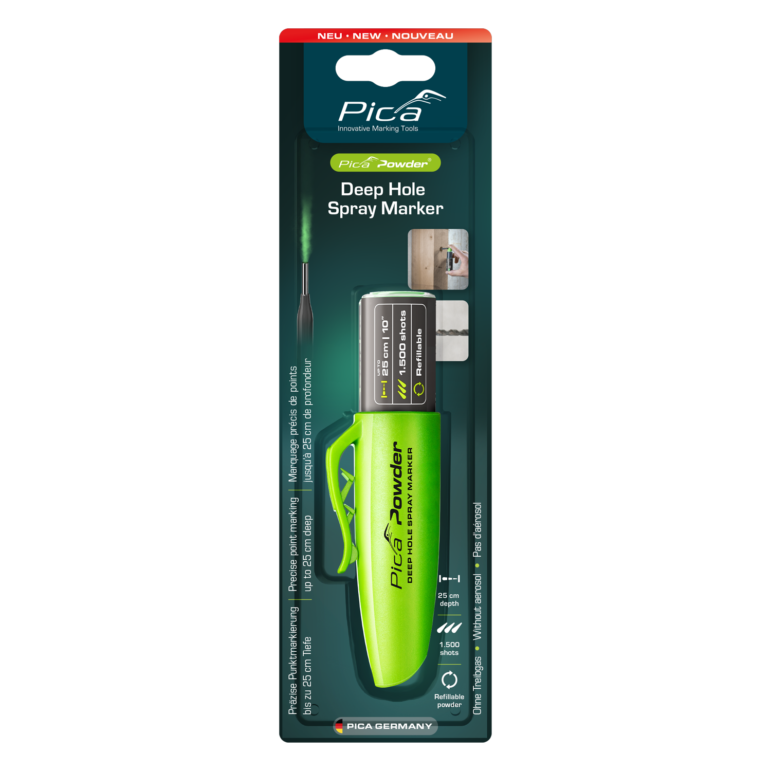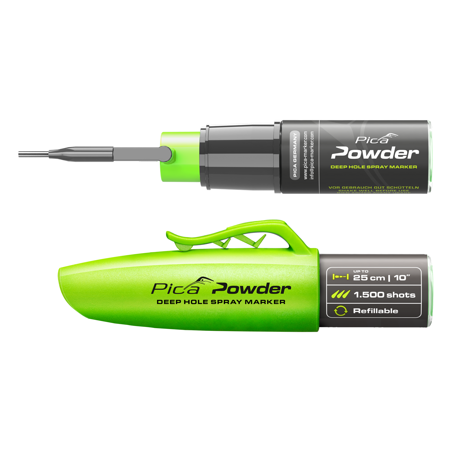 Pica Power er nýjasta afurðin frá Pica-Marker. Pica Powder er hylki sem geymir neongrænt kalkduft og er með dælubúnaði til að dæla kalkdufti til að merkja t.d. í gegnum djúp göt fyrir borstað á vegg. Á dælubúnaðinum er armur sem stungið er inn í gat sem á að merkja fyrir og svo þrýst á dælubúnaðinn til að skjóta út kalki. Það dugar að ýta hálfa leið ef kalkið þarf ekki að sprautast langa leið en verið er að merkja í gegnum djúpa holu þá þarf að þrýsta alla leið á dælubúnaðinn. Hægt að merkja í gegnum holu sem er allt að 25 cm djúp með Pica Powder.